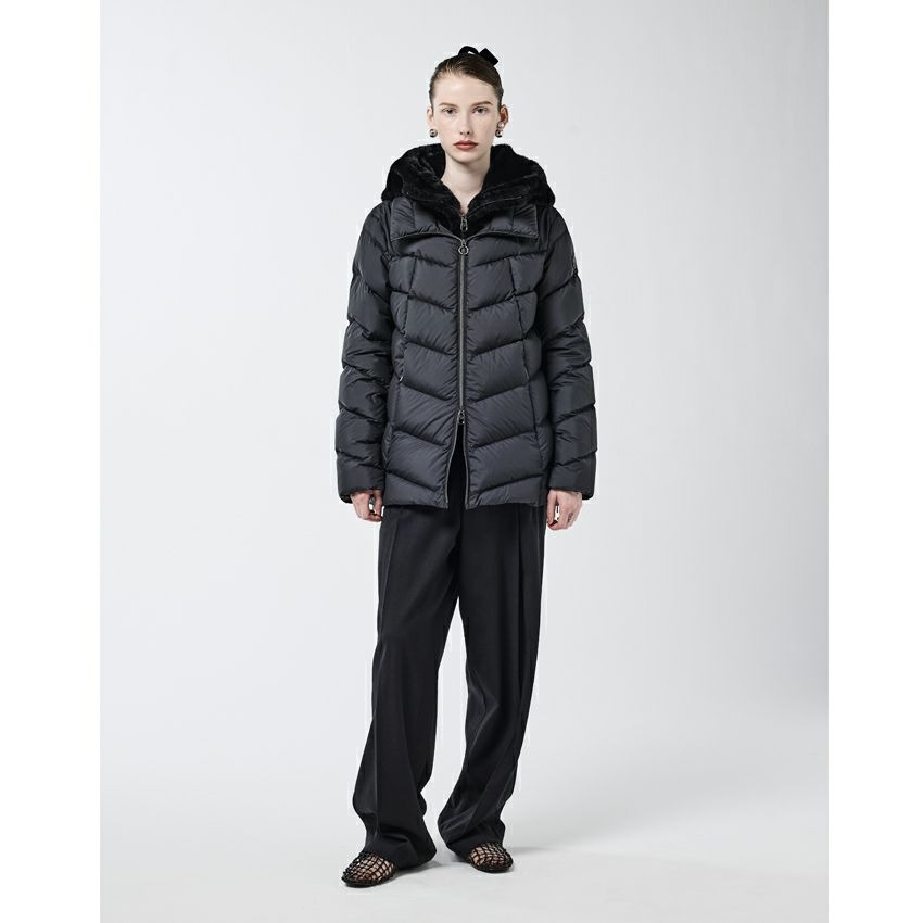 定番のセミロングダウンに、人気のエコファーとマット素材を組み合わせたコンビネーションモデルが登場。