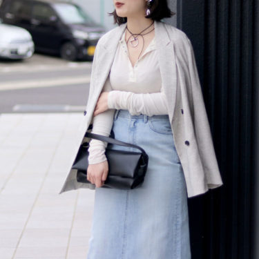 どこかに女性らしさを感じさせるポイントを作って上げると、カジュアルな合わせでも女性らしく仕上がります。
