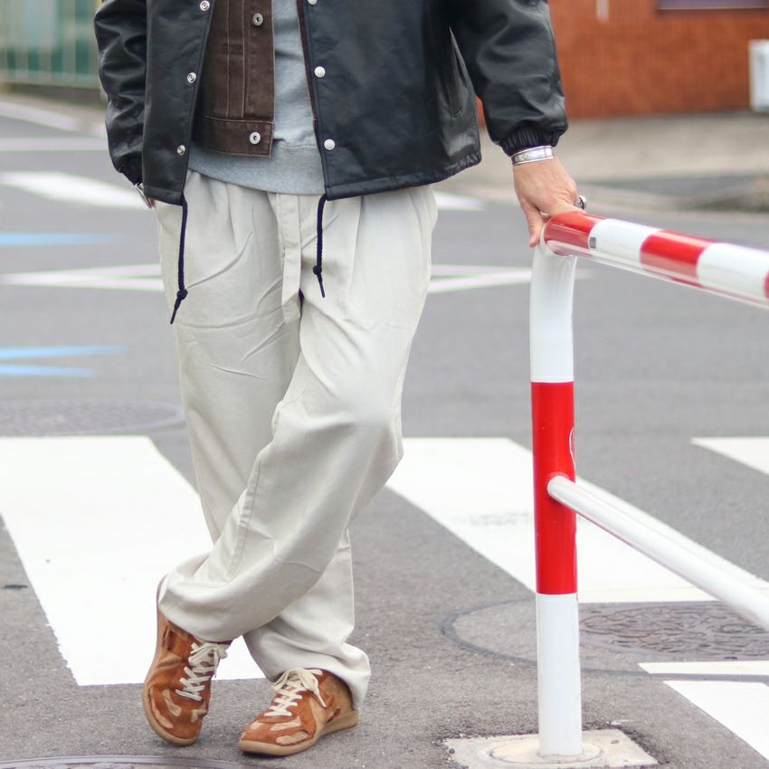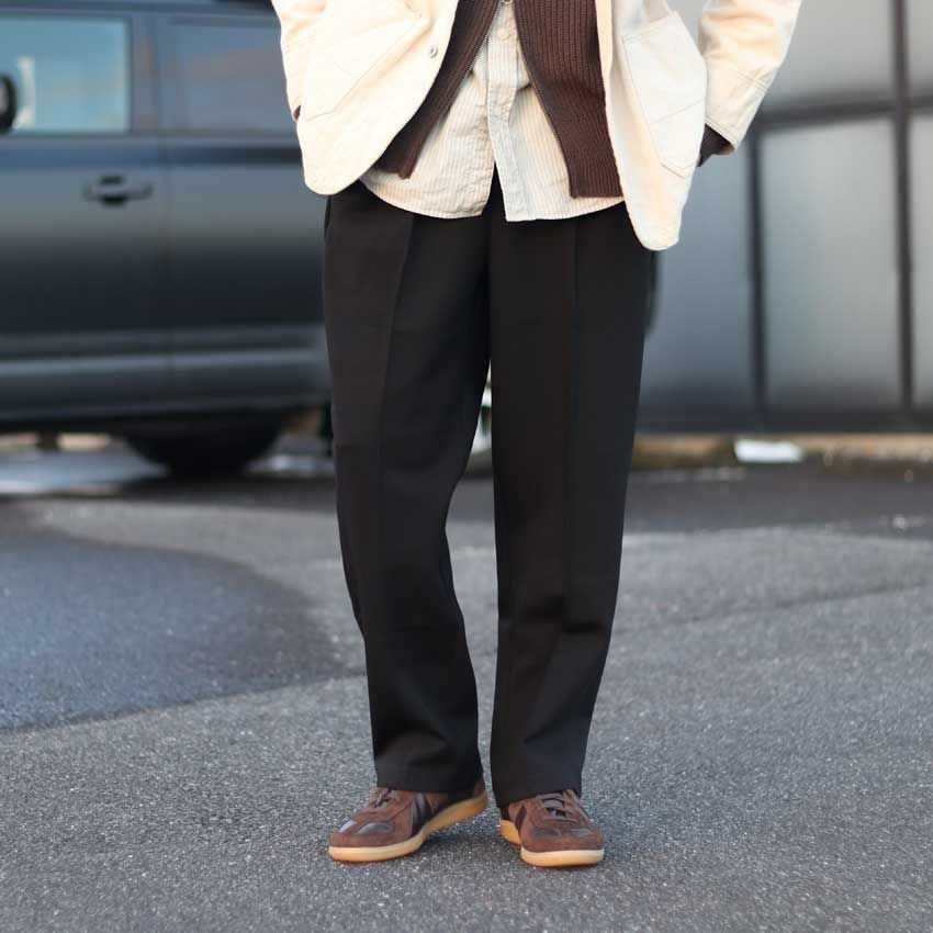 「ワイドすぎない」絶妙な太さで、ワンクッション程度の丈感、そして清潔感のある素材。