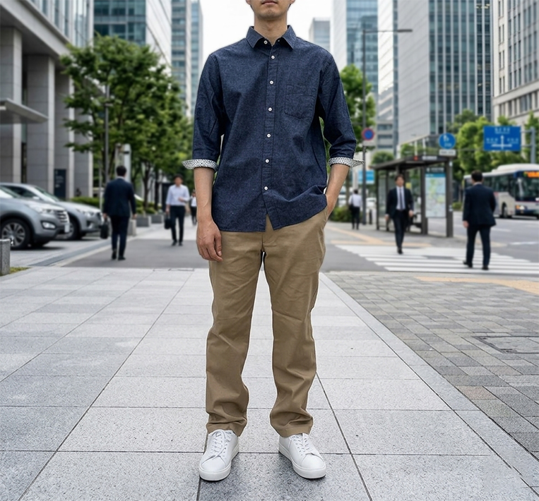 太すぎるパンツを少しすっきりさせるだけで、全体が見違えるように整います。