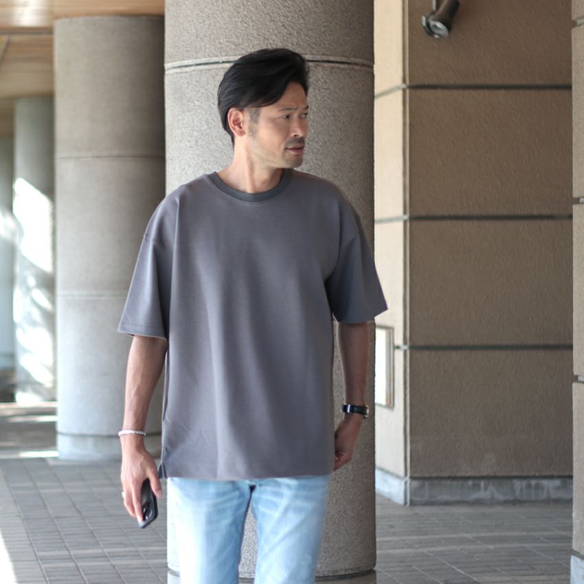 デニム好きのカジュアル派の方には、上品な印象のポンチ素材のオーバーサイズTを合わせれば、大人の余裕を感じさせるような洗練されたスタイルになります。
