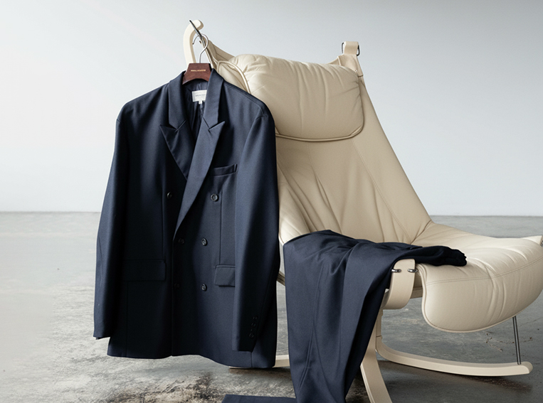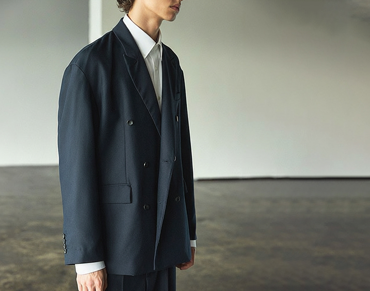 ダブルブレストでクラシックに、シングルの2つボタンでミニマルに。