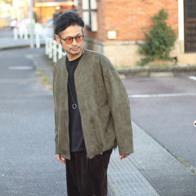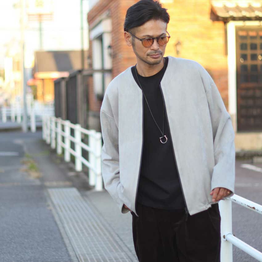 高級感のあるスエード素材とゆとりのあるシルエットで、ラフでもきちんとした印象に。