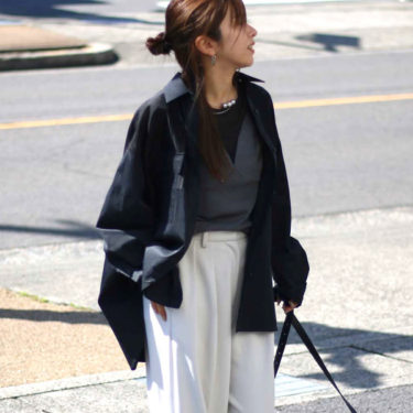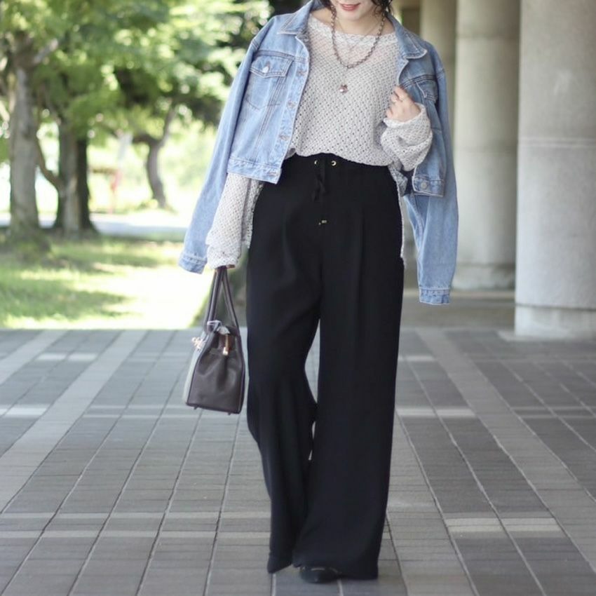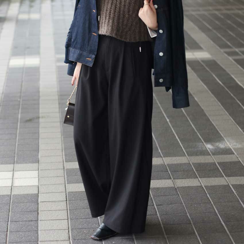 体型を“隠す”のではなく、“整えて見せる”ワイド感が大人には嬉しいところです。
