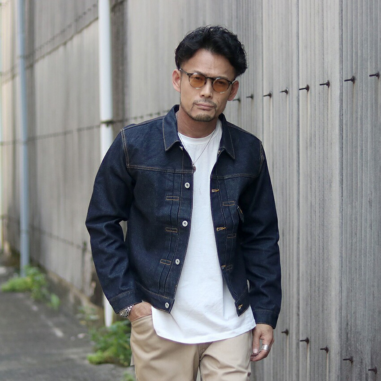 オーソドックスなデニムスタイルや、スラックスや革靴でわざと外しとして使ってもカッコいいジャケットです。