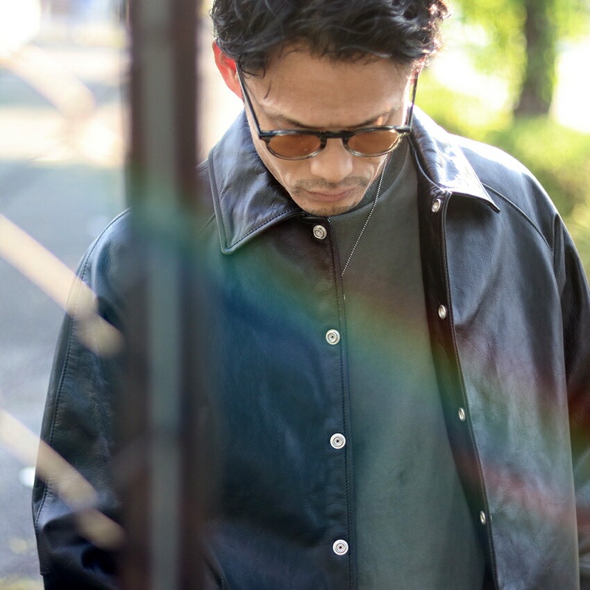 コーチジャケット型なので、「レザージャケット=ハード」という印象がなく、アメカジすぎない大人のカジュアルスタイルにハマります。