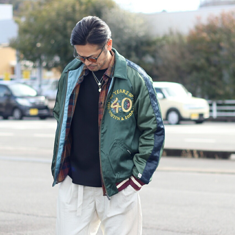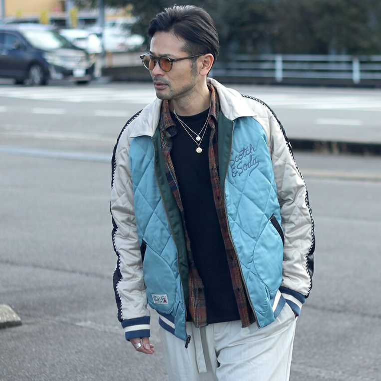 グリーンとブルーがそれぞれレトロな雰囲気で、スコッチ&ソーダ特有の自由な発想によりアート性の高い一着です。