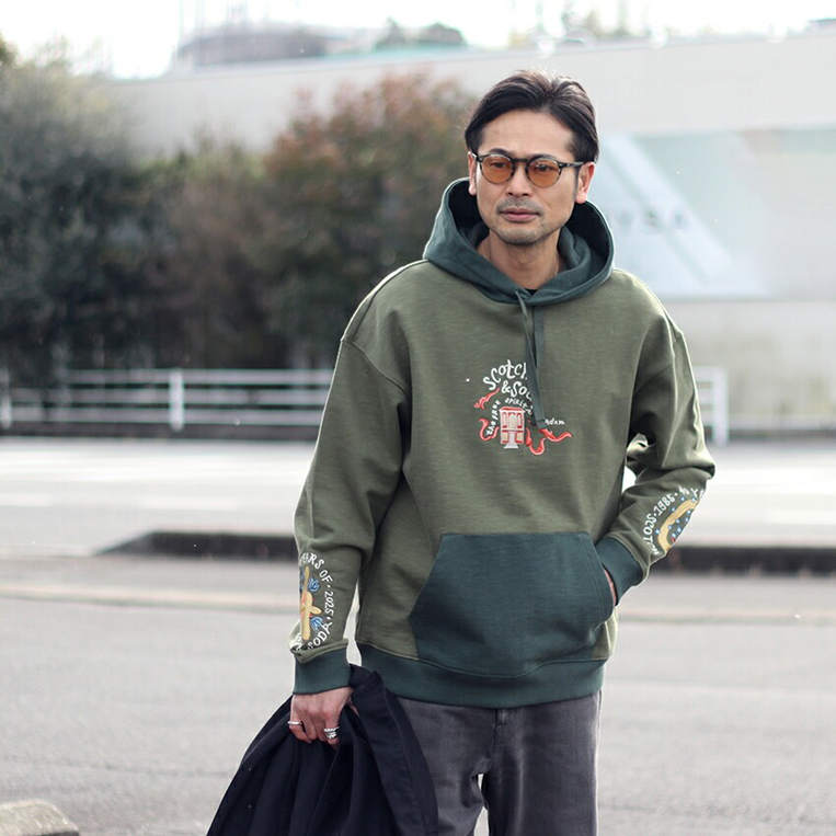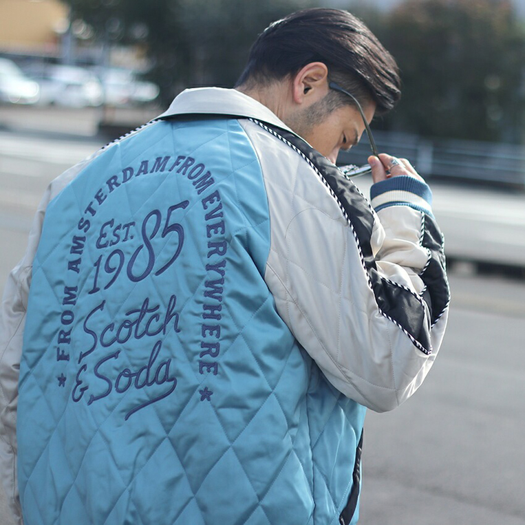 2トーンに切り替えられたさりげない配色や、アンバランスに配置された刺繍ロゴなど、スコッチ&ソーダならではの遊び心を感じさせます。
