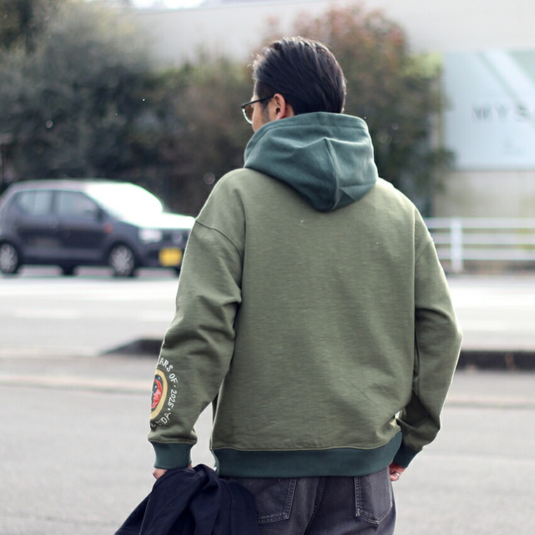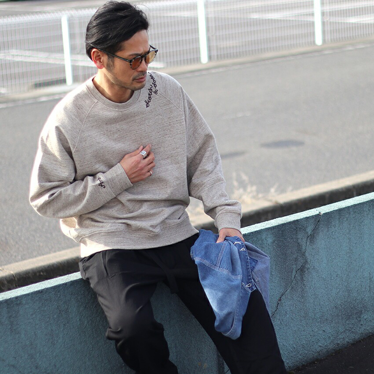 素材にはしっかりとした生地感のスラブスウェット素材を採用。デイリーに使いやすいアイテムです。