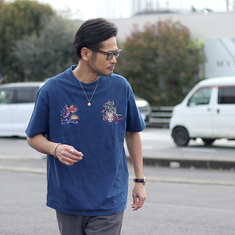 アメカジTシャツを連想させる、左胸とバック刺繍が魅力的な一枚。
