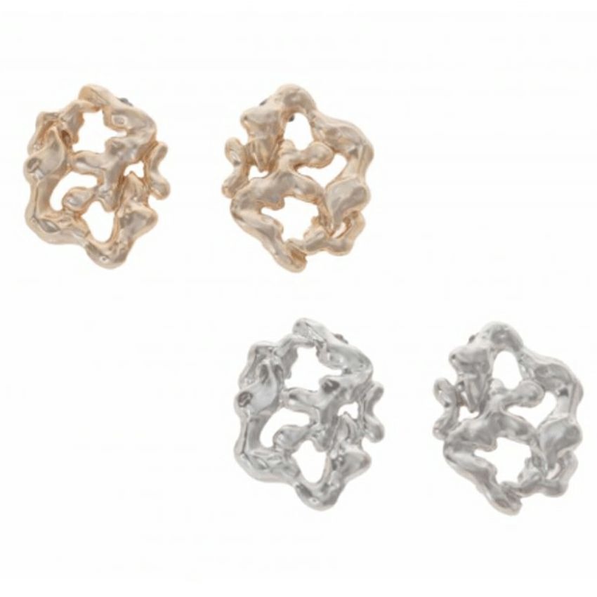 独特なフォルムが目を引く、歪な“0”型デザインのピアス。