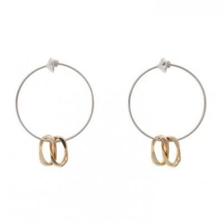 華奢なフープにアクセントになるバイカラーのチェーンがあしらわれた一本。