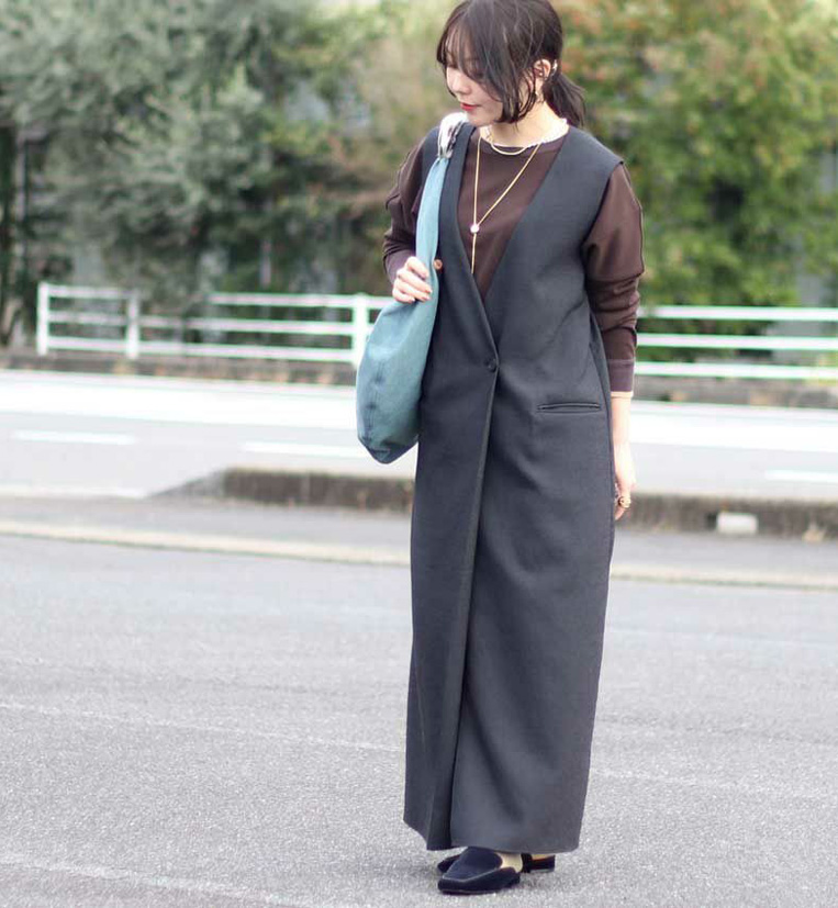 ロングジレの洗練された雰囲気はそのままに、ジャンスカならではの女性らしさをプラスした、ほかにはない特別な一着。